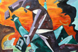 manchmal auch farblich (koloristisch) mit den ausgestellten Bildern